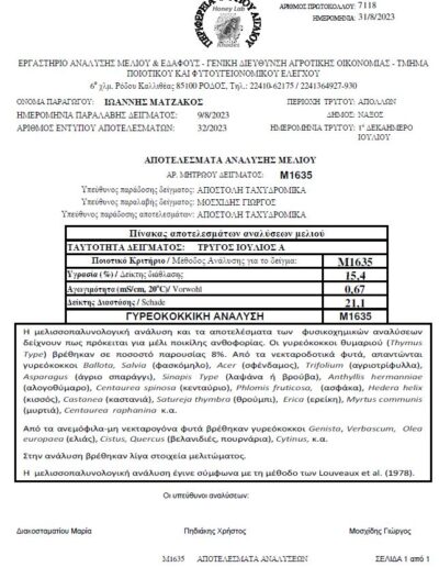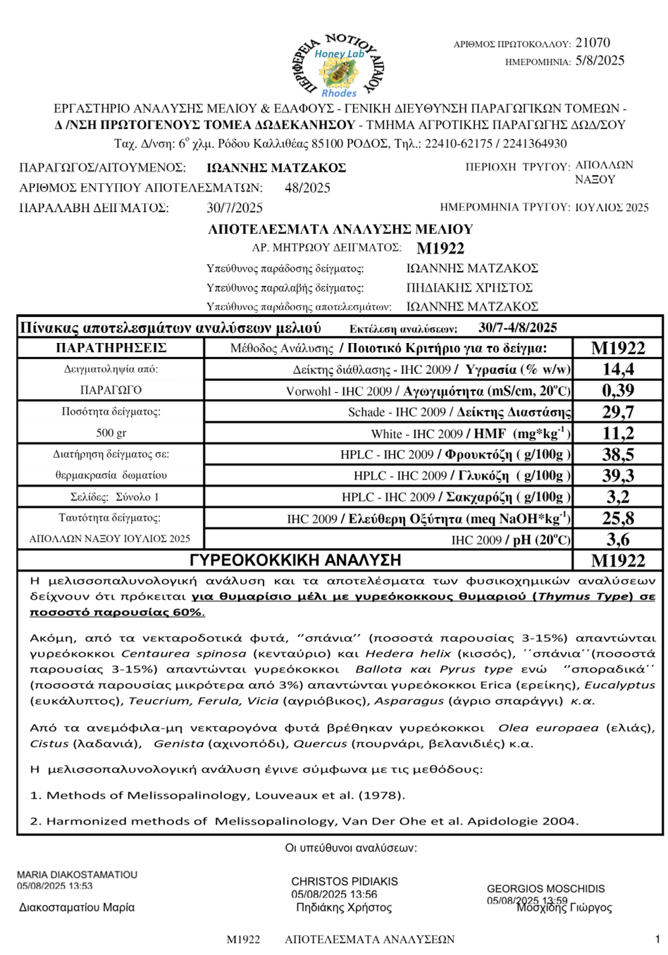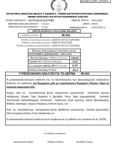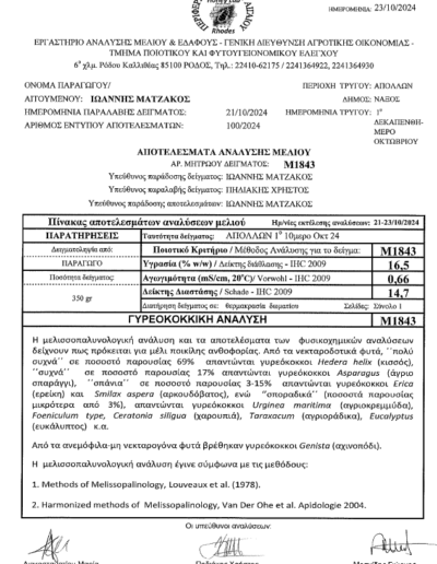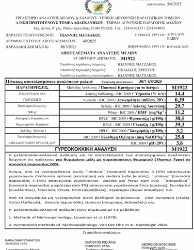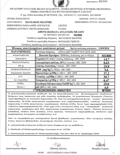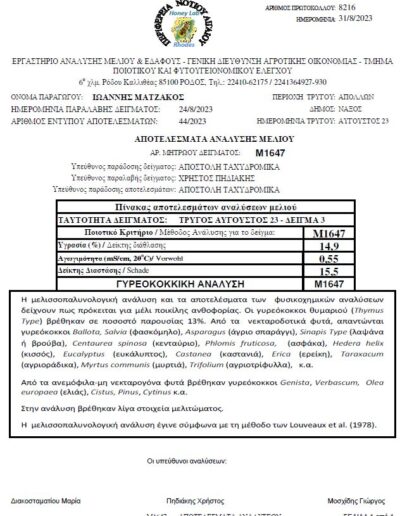 Honey Analysis ΘΥΜΑΡΙΣΙΟ ΑΥΓΟΥΣΤΟΣ 2025 ΘΥΜΑΡΙΣΙΟ ΙΟΥΛΙΟΣ 2025 ΑΝΘΟΜΕΛΟ ΑΝΟΙΞΗ 2025 ΚΙΣΣΟΣ, ΡΕΙΚΙ & ΑΓΡΙΑ ΛΟΥΛΟΥΔΙΑ ΟΚΤΩΒΡΙΟΣ 2024 ΘΥΜΑΡΙ, ΒΟΤΑΝΑ & ΑΓΡΙΟΛΟΥΛΟΥΔΑ ΙΟΥΛΙΟΣ 2024 ΑΝΘΟΜΕΛΟ ΑΠΡΙΛΙΟΣ 2024 ΑΝΘΟΜΕΛΟ ΟΚΤΩΒΡΙΟΣ 2023 ΑΝΘΟΜΕΛΟ ΑΥΓΟΥΣΤΟΣ 2023 ΑΝΘΟΜΕΛΟ ΙΟΥΛΙΟΣ 2023 Β ΑΝΘΟΜΕΛΟ ΙΟΥΛΙΟΣ 2023 Α ΑΝΘΟΜΕΛΟ ΙΟΥΝΙΟΣ 2023 Anthomelo October 2022 Thyme B harvest August 2022 Thyme July 2022 Antomelo May 2022 Fall 2021 Fall 2021 Thyme August 2021 Thyme August 2021 Heather October 2020 Thyme September 2020 Thyme August 2020 Θυμαρίσιο Αύγουστος 2020 – Γυρεοσκοπική Εξέταση Thyme August 2019 (1) Thyme August 2019 (2) Anthomelo August 2018 Thyme September 2017 Thyme August 2017 Anthomelo May 2017 (1) Anthomelo May 2017 (2) Newsletter Do you want to know our news? Subscribe and stay tuned! Success! Email Subscribe FollowFollowFollow